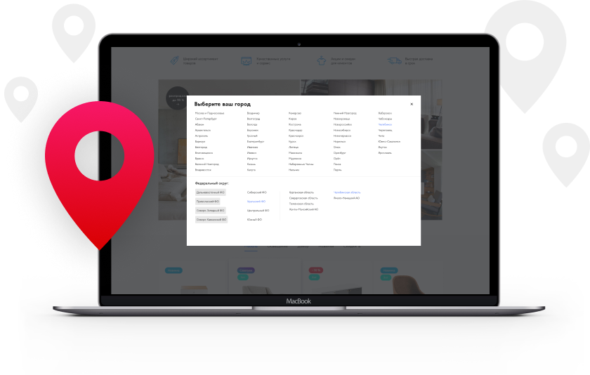 Модуль INTEC: Мультирегиональность для «1С-Битрикс» позволяет предоставлять пользователям вашего интернет-магазина актуальную информацию по их региону: контакты магазинов, остатки товаров по складам, региональные скидки, региональные цены на товар и т.д. Это оптимальный вариант для крупных интернет-магазинов со множеством представительств в разных регионах.